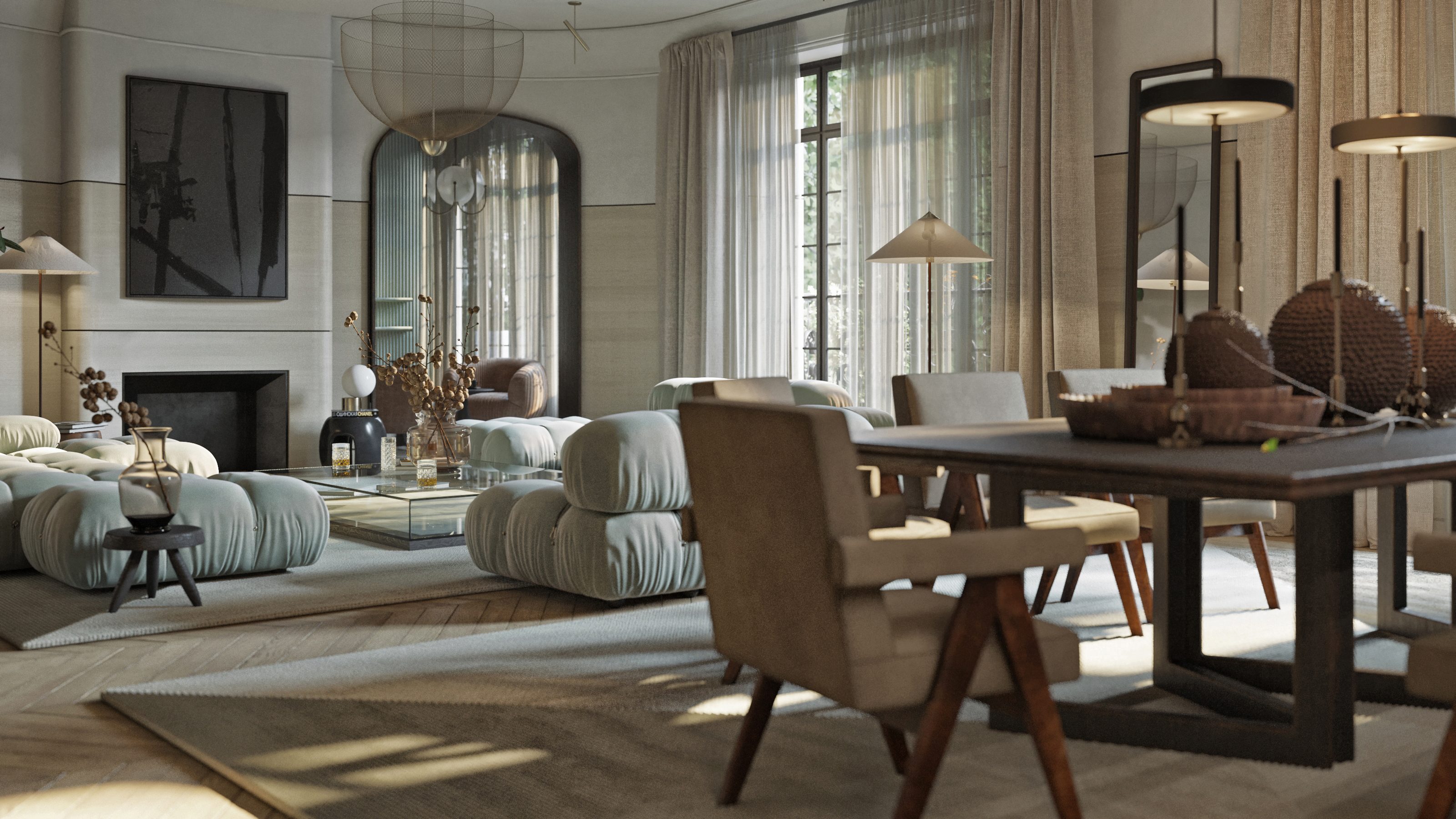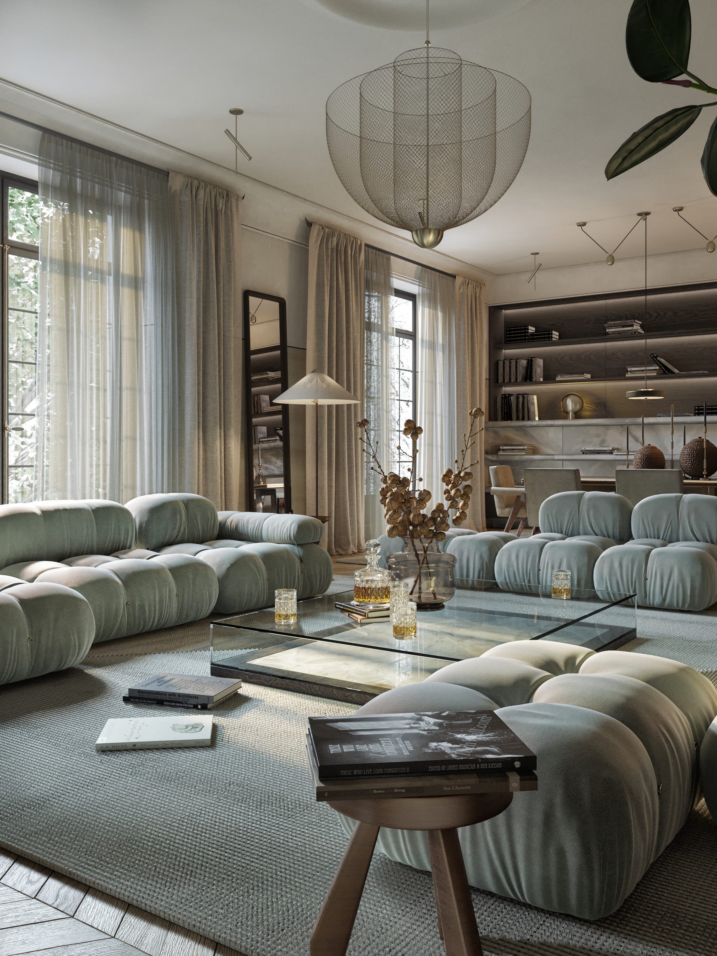 3 bedrooms, 4 bathrooms, hammam, huge living room, art room, home office, two dressing rooms, open kitchen, service kitchen, laundry room.
