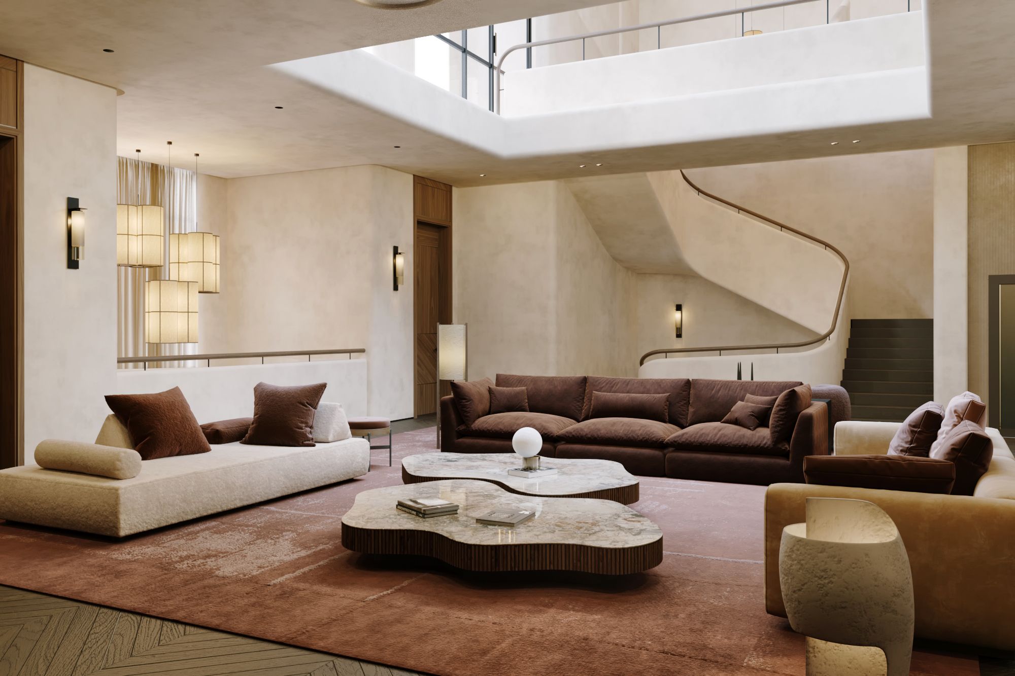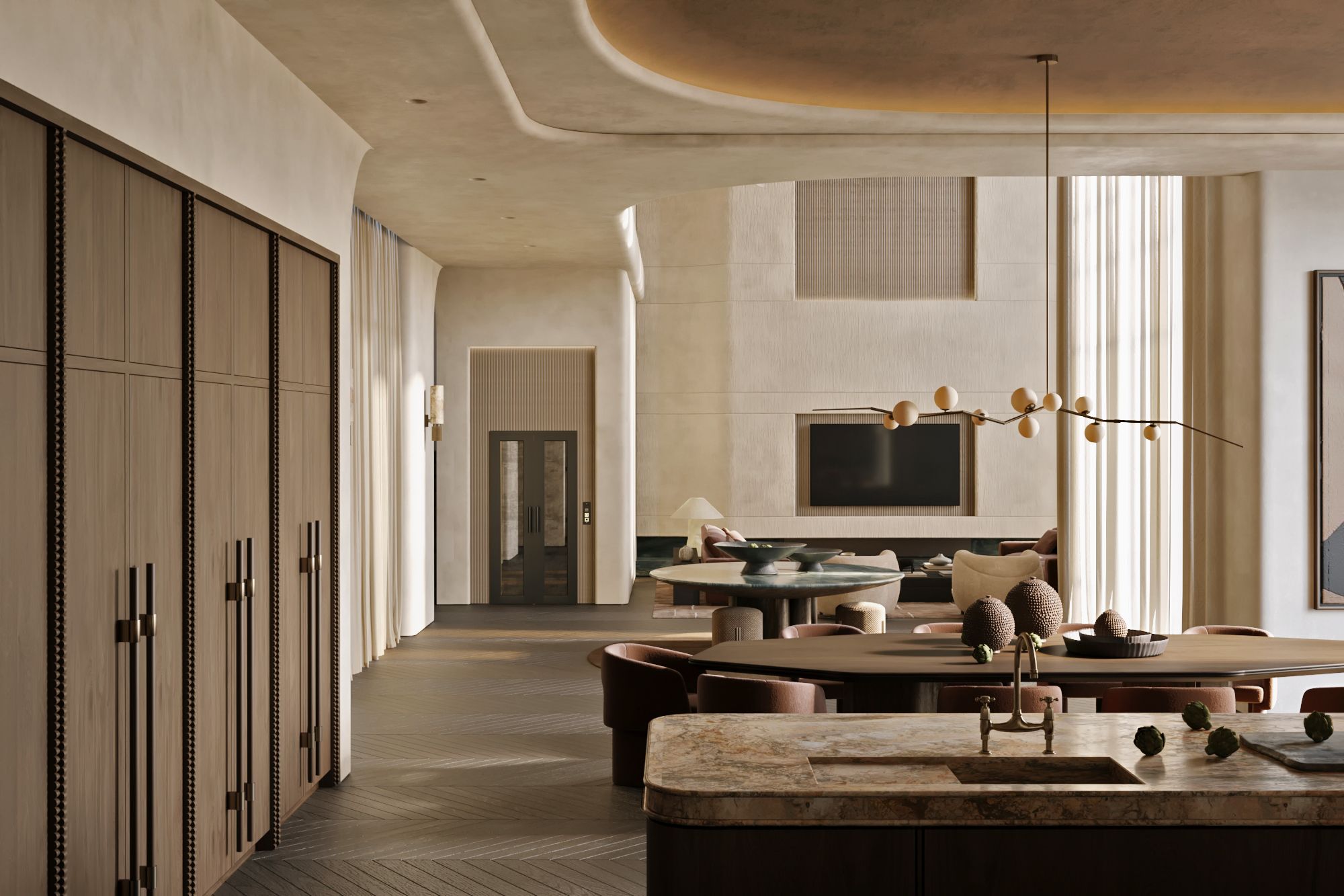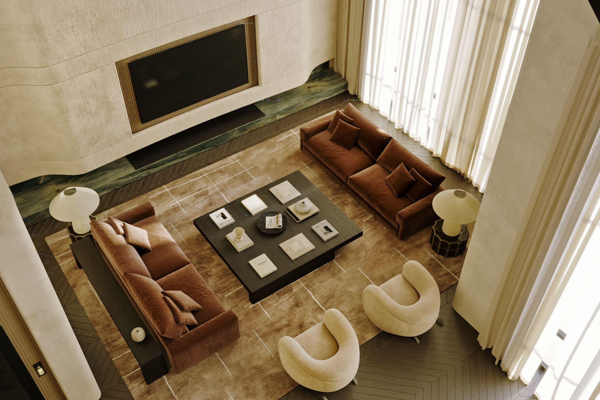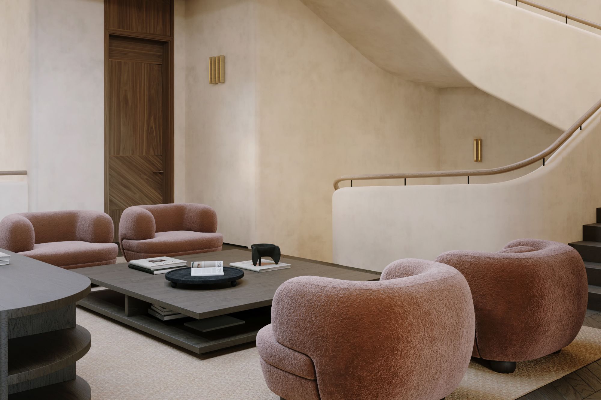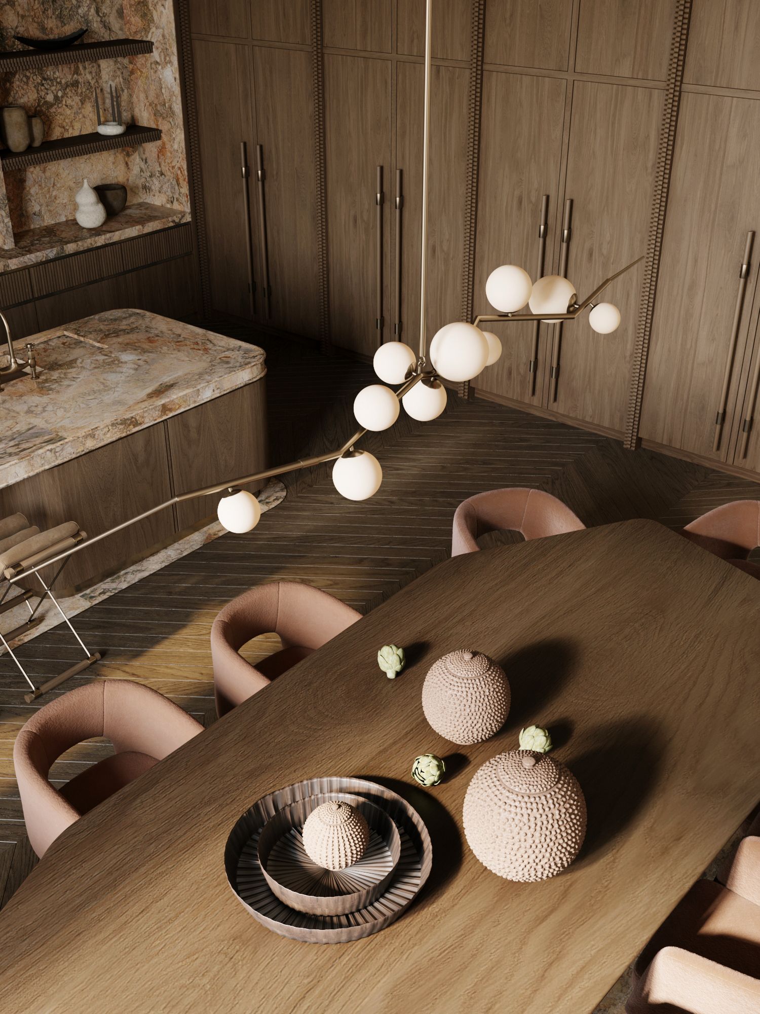 4 floors, 5 bedrooms, set of family spaces, set of guest spaces, open kitchen, study room-library, home office, set of service premises.
